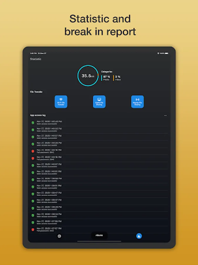 • Intruder report: Capture photos of unauthorized individuals attempting to access your app