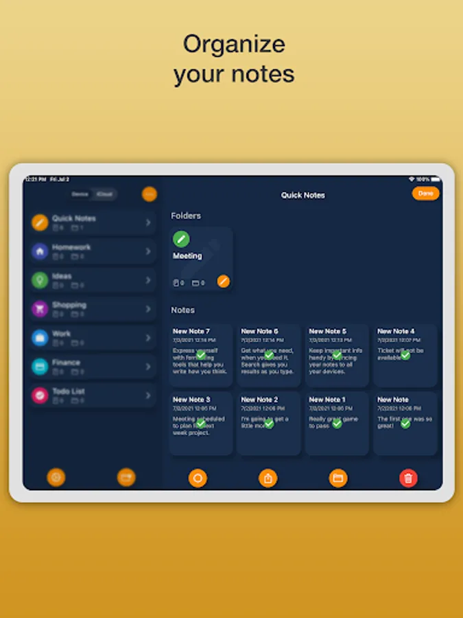 • Passcode protection: Quickly and easily secure your most private and sensitive notes with a passcode only known to you