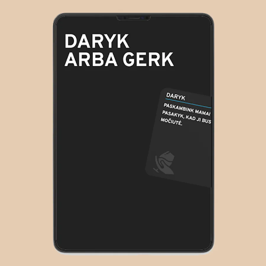The DO OR DRINK game is for adults. The essence of the game - on the card you will find a task that you must complete, if you refuse to do it, you will have to take a shot (not necessarily alcohol). In the game you will find a wide range of challenges, singing, dancing, tasks for all players, social networks, moments of truth, the funniest stories and many other good cards! On the cards you will find choices such as: answer the truth, exercise courage, or drink.