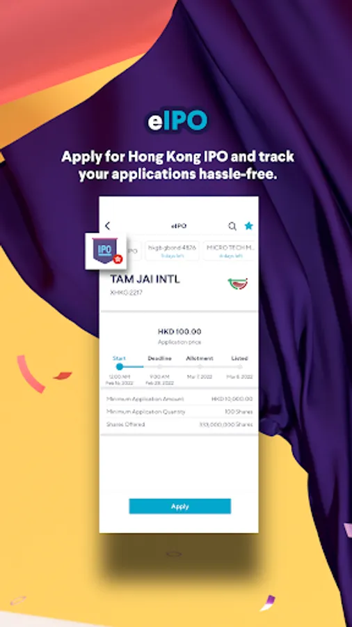 Apply for Hong Kong initial public offerings within the SoFi app with just a few simple taps and with no additional handling fee. Track your IPO application easily and get notified - all in the SoFi app.