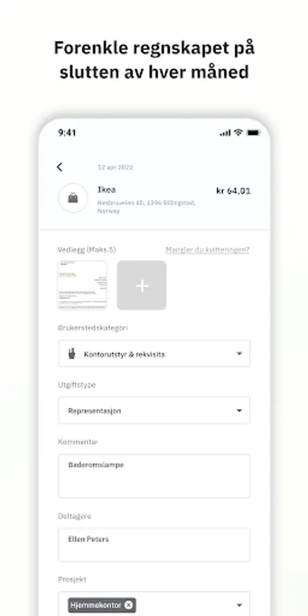 betale for og rapportere jobbrelaterte utgifter. Appen gir deg