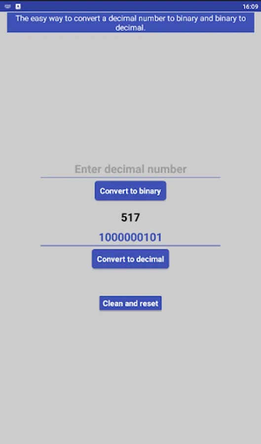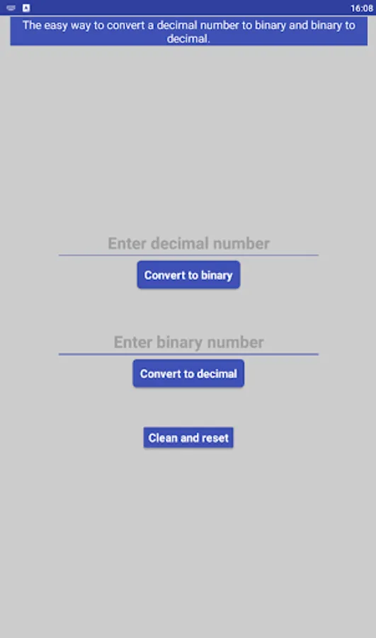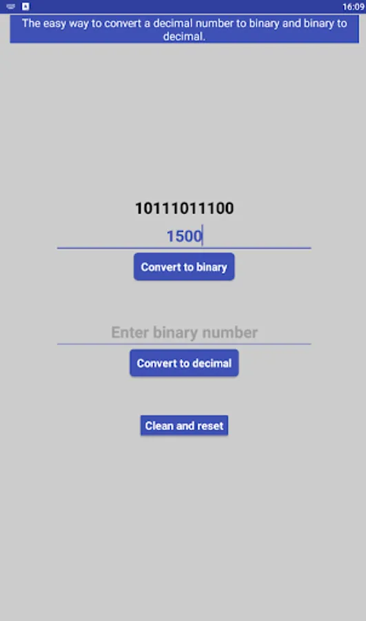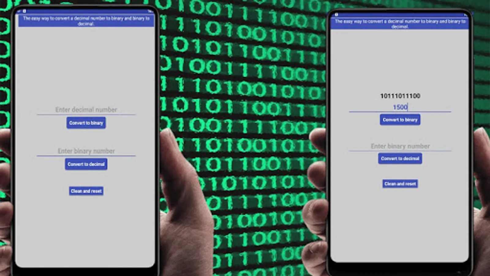 An easy to use App that can convert a binary number into a decimal number and a decimal number into a binary number.