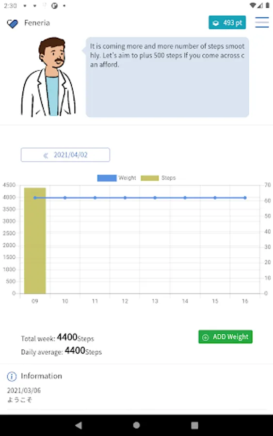 We will automatically send you advice in cooperation with your weight and number of steps in Google Fit.