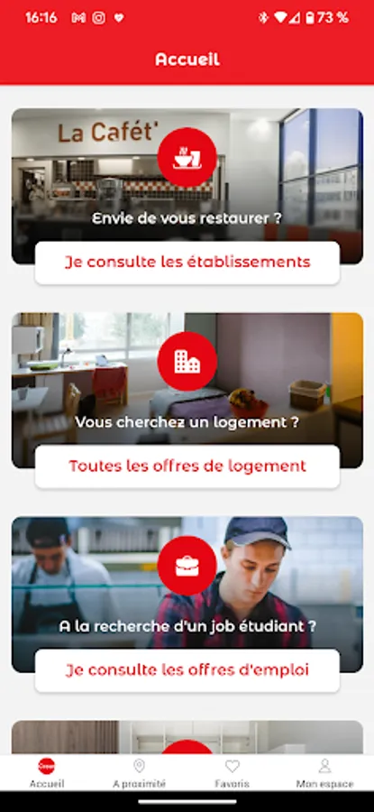 Menus in the UK, accommodation, itineraries, geolocation, Crous services, contacts, news (cultural dates ...), timetables ...