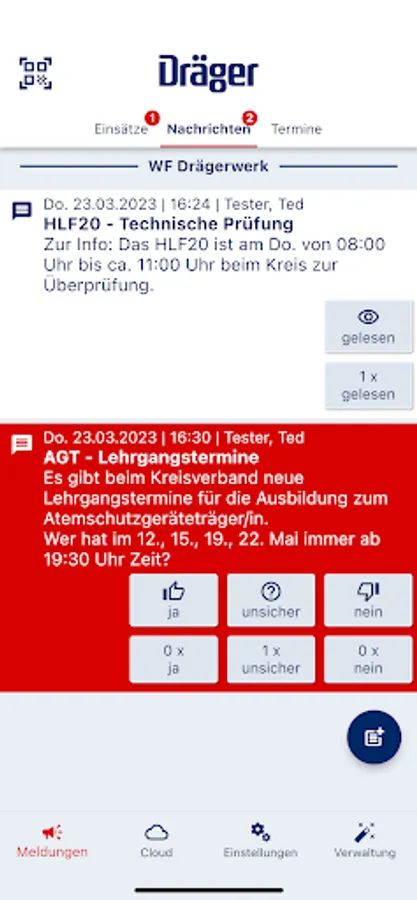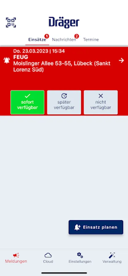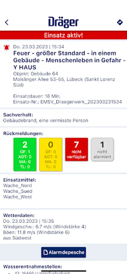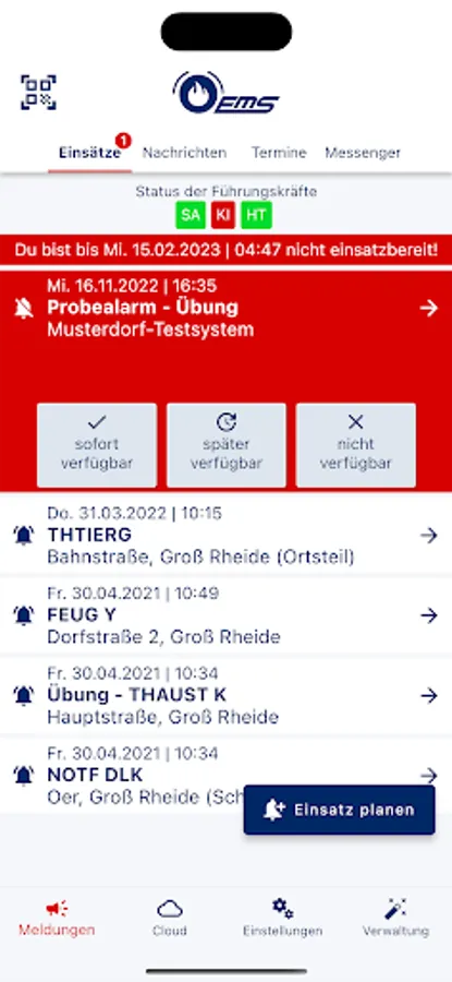 Rescue workers from aid organizations who use the deployment reporting system can use EMS alarm as an additional means of deployment and status reporting.