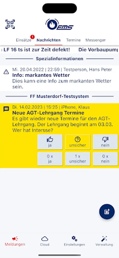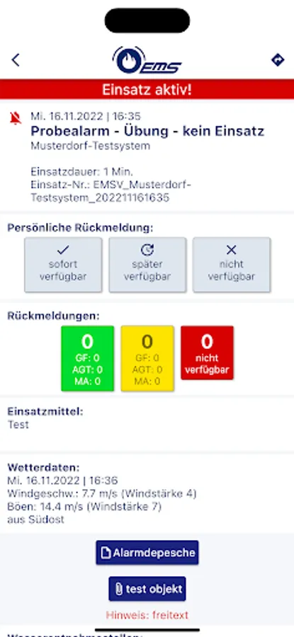 EMS-Alarm - an additional reporting and information system specifically for aid organizations and industry