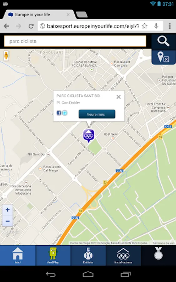 BaixEsport, an application developed by the Sports Council of Lower Llobregat offers you a portal with all the sports geocalitzada of the Baix Llobregat (facilities, a calendar of events, tours, attractions, organizations, sports , shops, etc.).