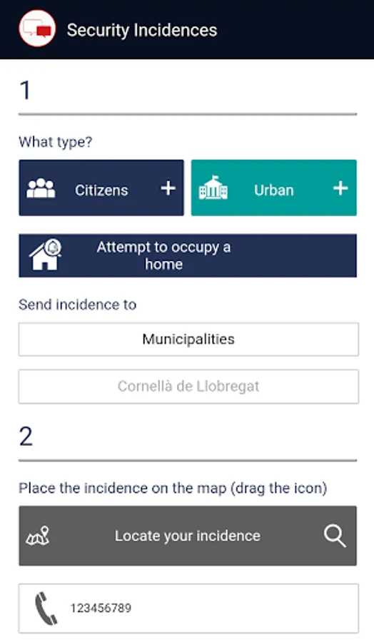 SEND INCIDENTS: To the Local Police or Guardia Urbana of the attached municipalities, with the possibility of locating it on the map and attaching documents or photographs.