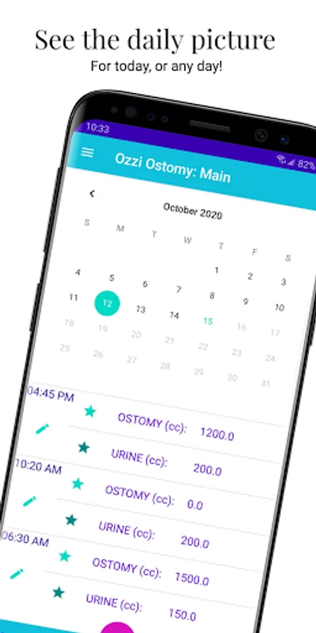 As you go about your day, just enter the amounts of stool you empty from your ostomy, and, if you are able, enter the amounts of urine you void throughout the day.