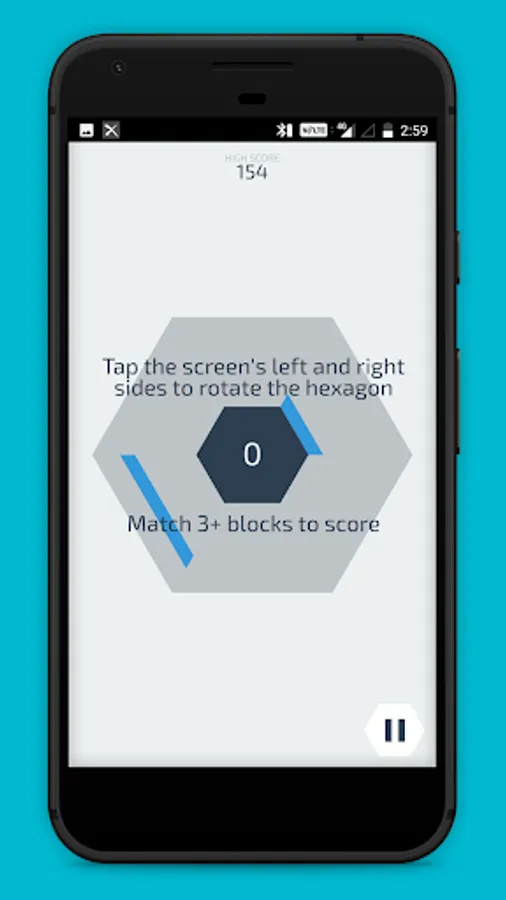 2. The objective of the game is to prevent the blocks from stacking outside the grey area of the hexagon