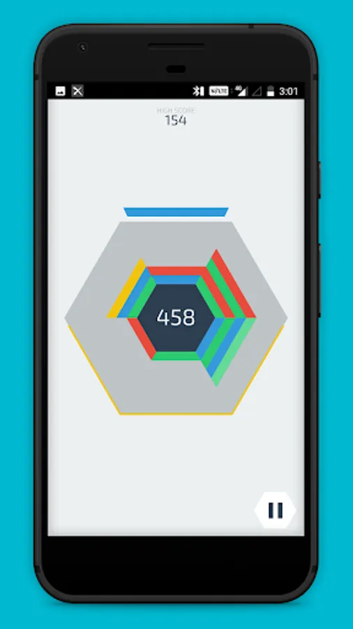 1. Blocks start on the edges of the screen, and fall towards the inner blue hexagon