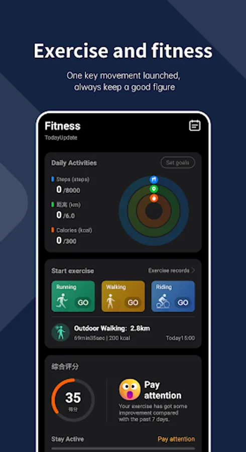 (2)Activity data analysis: Support data visualization display after recording exercise, and you can view various detailed exercise index analysis to help manage the amount of activity and exercise plan.