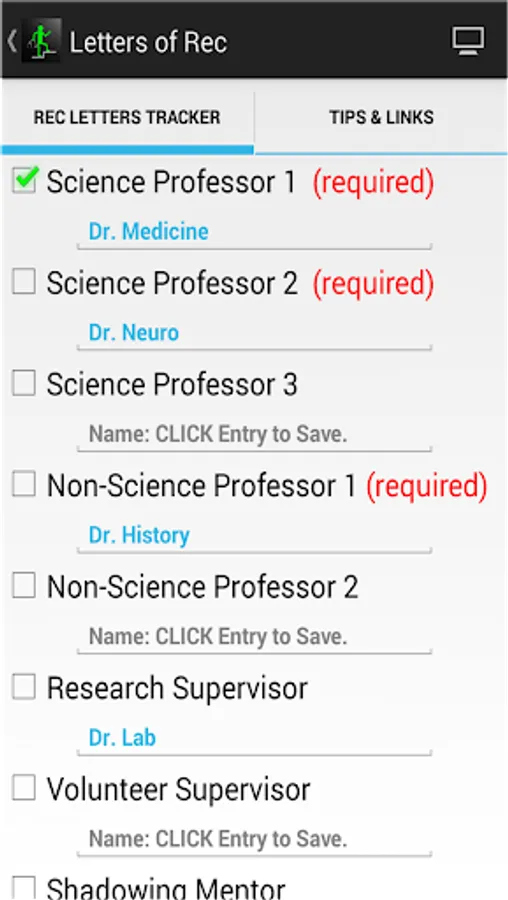 4. LETTERS OF REC TRACKER - Reveals the types of letters medical schools expect from you, and allows you to easily track the status of your letters of recommendation and enter recommender names.