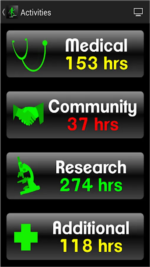 1. ACTIVITY TRACKER - Allows you to track hours and document your medical, community, research, and additional activities in much the same way you will document them on your AMCAS Primary Application.