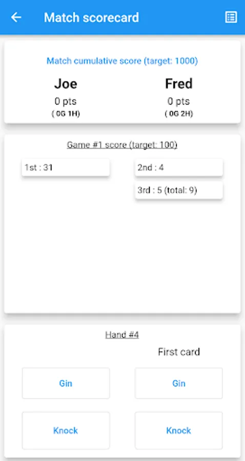 An app for capturing and calculating hand, game and match scores for a two player Gin Rummy game.