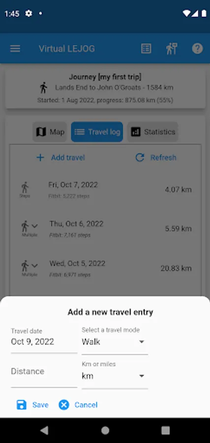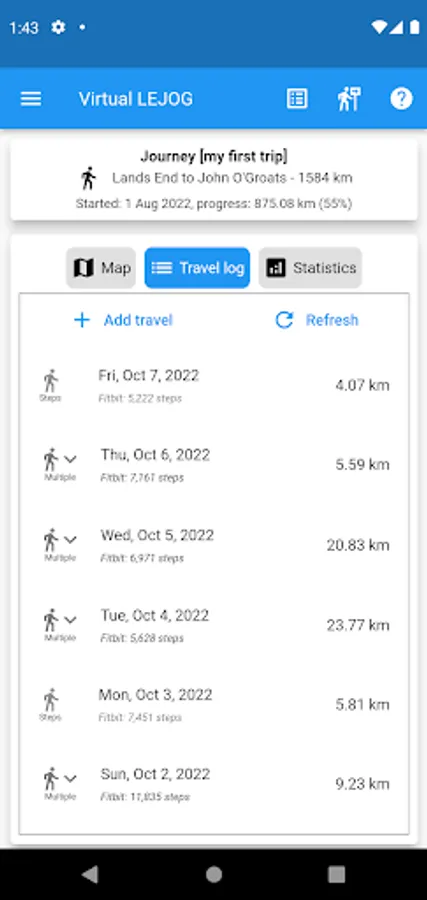 - Capture your daily progress along the route via travel entries entered by the app user or captured automatically from your smart watch or phone device.