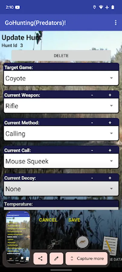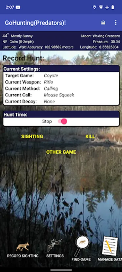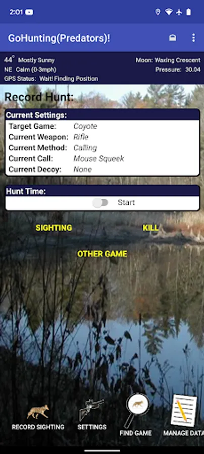 GoPredatorHunting is not a game. It is a ground-breaking data collection and powerful data analysis app for the casual to serious hunter. The outdoorsman can capture the exact GPS location, time and date, weather conditions, and type of game sighted during your hunts. All at the point of the sighting. Using the built in timer you can track how long you spend in a spot before you see your quarry. Over time, the app will have captured enough data to give you accurate predictions of where, and what time of day, you should hunt.