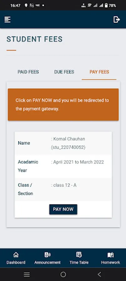 ๐ Online Fees Payment: Pay fees at your convenience, right from your mobile phone.