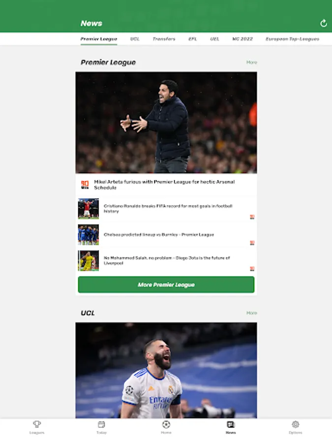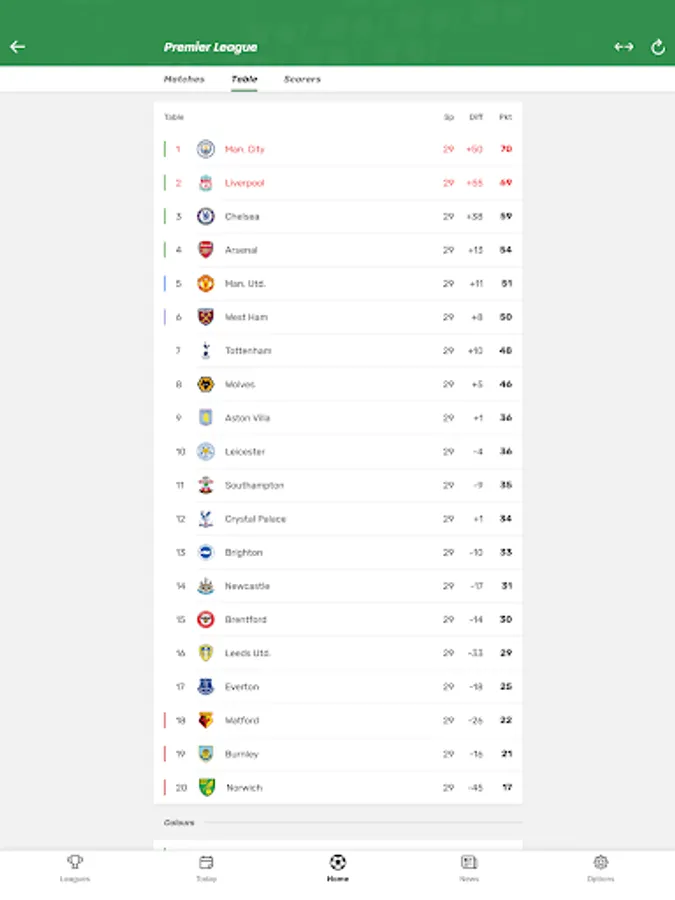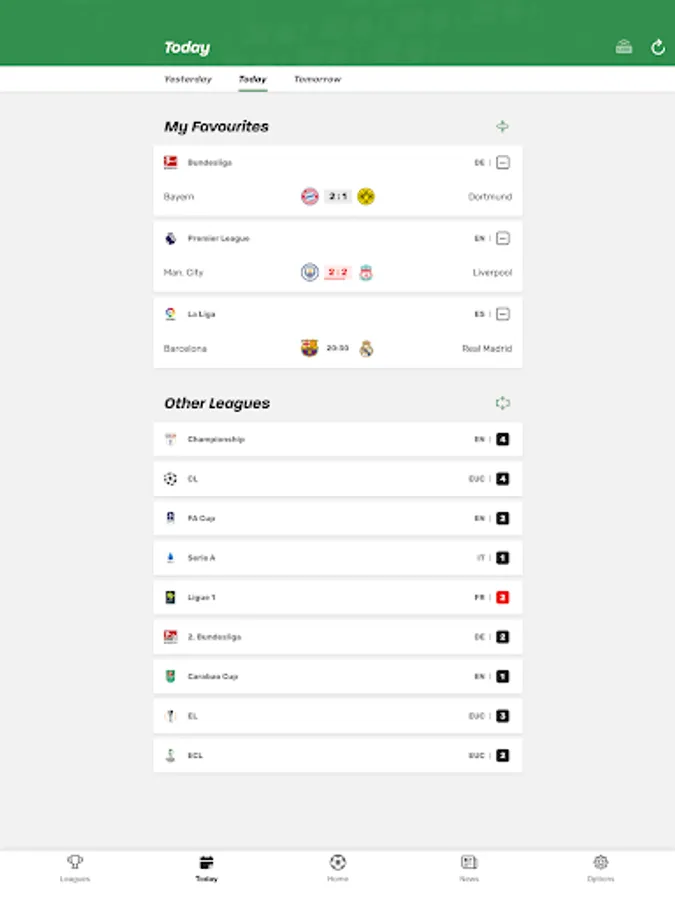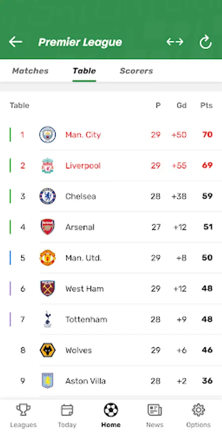 Get all scores and results of the Premier League on your smartphone. Simply download our free app, set your favourite teams and never miss a goal in Europe's top leagues.