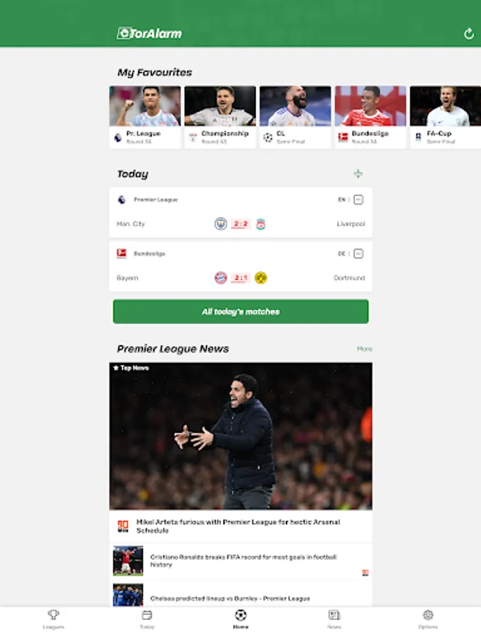 You can also follow the Championship, all cups, as well as international football tournaments in real time. TorAlarm is user-friendly and comes without any complicated gimmicks.