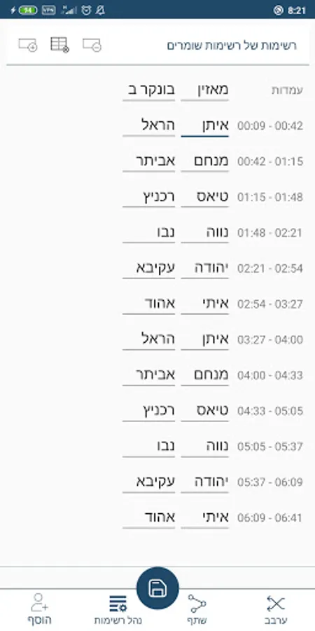 - From hour to hour and divided by number of people or by number of people in a pre-defined list of guards.