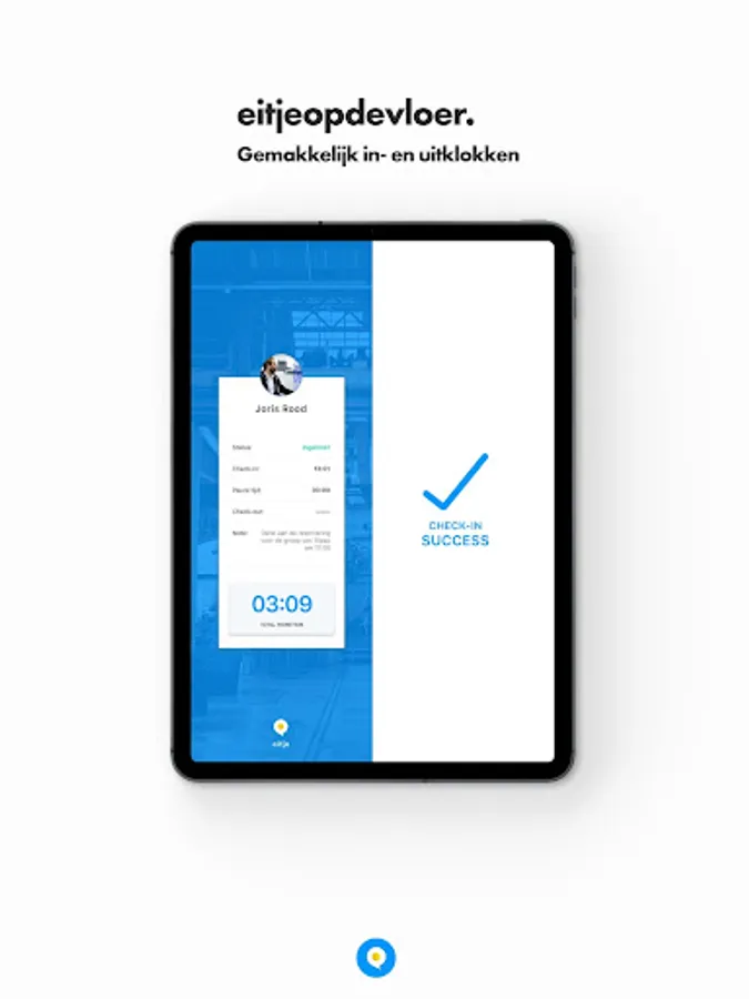 Make managing your hospitality team easier than ever before. With eitjeopdevloer you can setup your own clocksystem within 2 minutes.