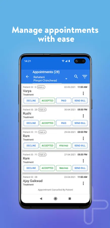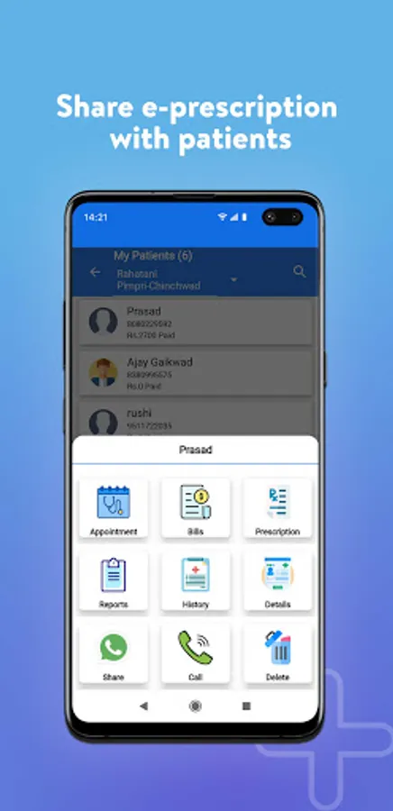 Go digital - accept secure payments through your clinic's link and send bills to the patients. Send prescription from the app to patients and pharmacy.