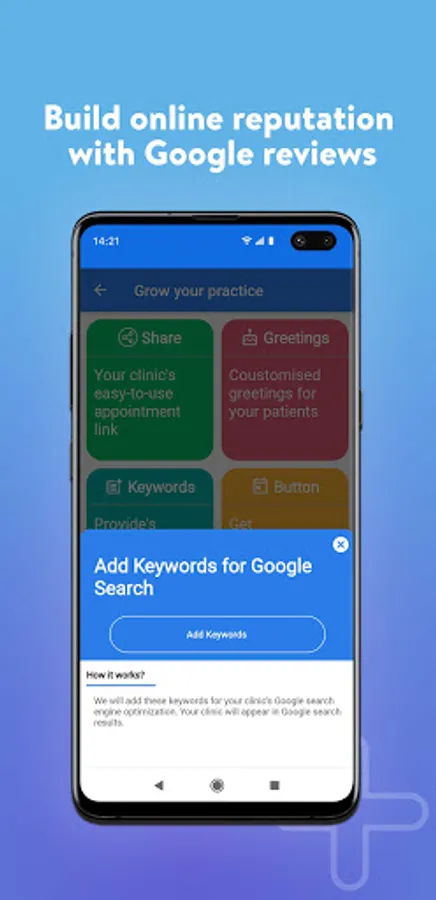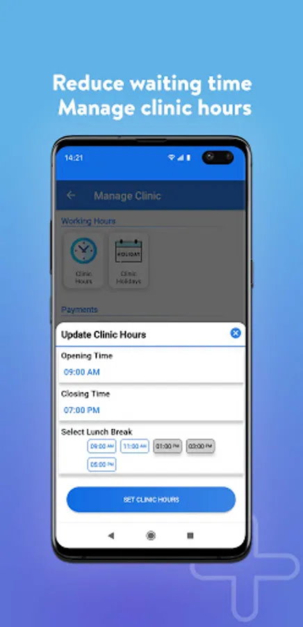 Once you register, your clinic's link is optimized for Google search. You can add more details of your expertise from the app for visibility to new patients. Easily manage clinic timings and holidays, which will be shown to patients in the runtime for better planning of appointments.