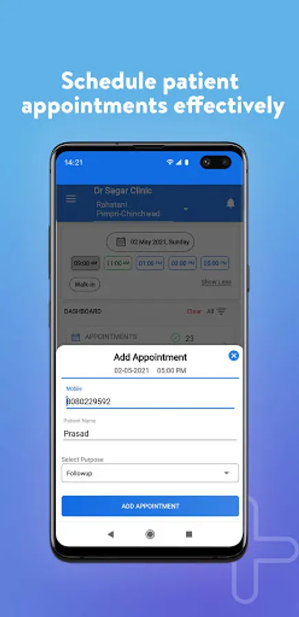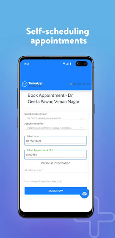 TimeApp allows you and your clinic staff to book appointments on behalf of the patients. This helps in booking your existing and future follow-up appointments.