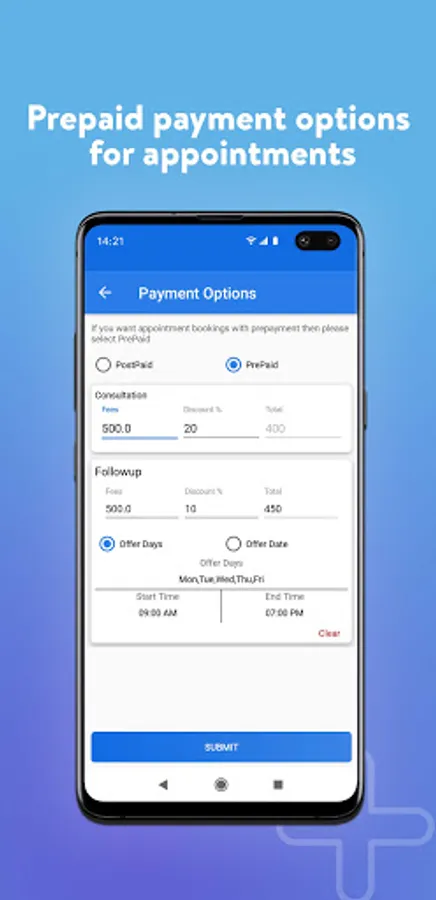 If you want to setup appointments only after prepayment, that option is available. Also, your clinic can offer discount on consultation fees under payment options.