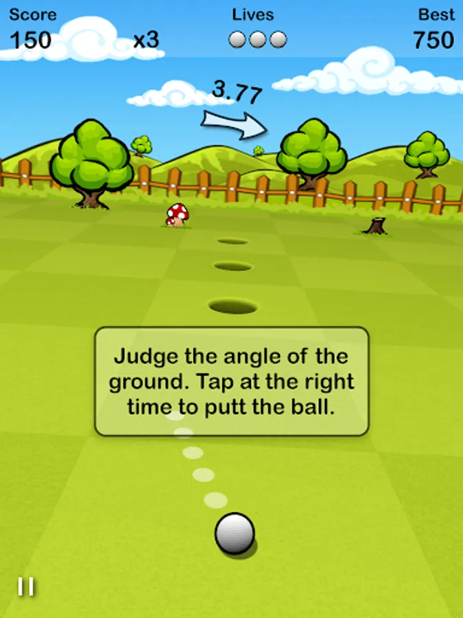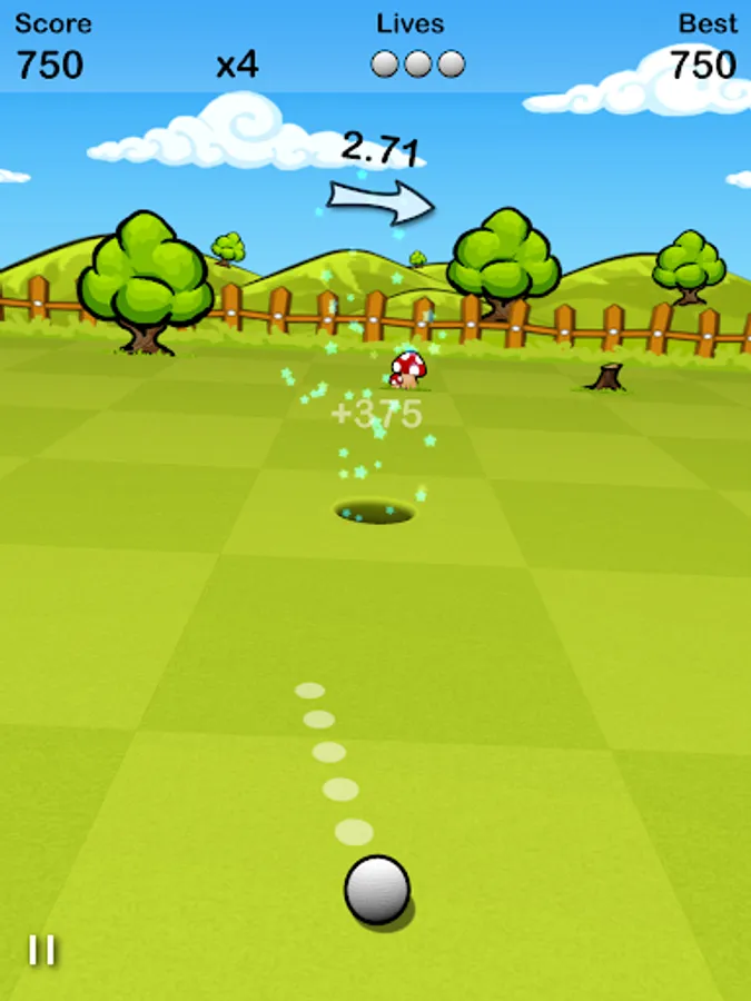 3 LIVES - You have 3 chances to miss and putt how much you can. Consecutive putts increases the multiplier and gives boost to your score.