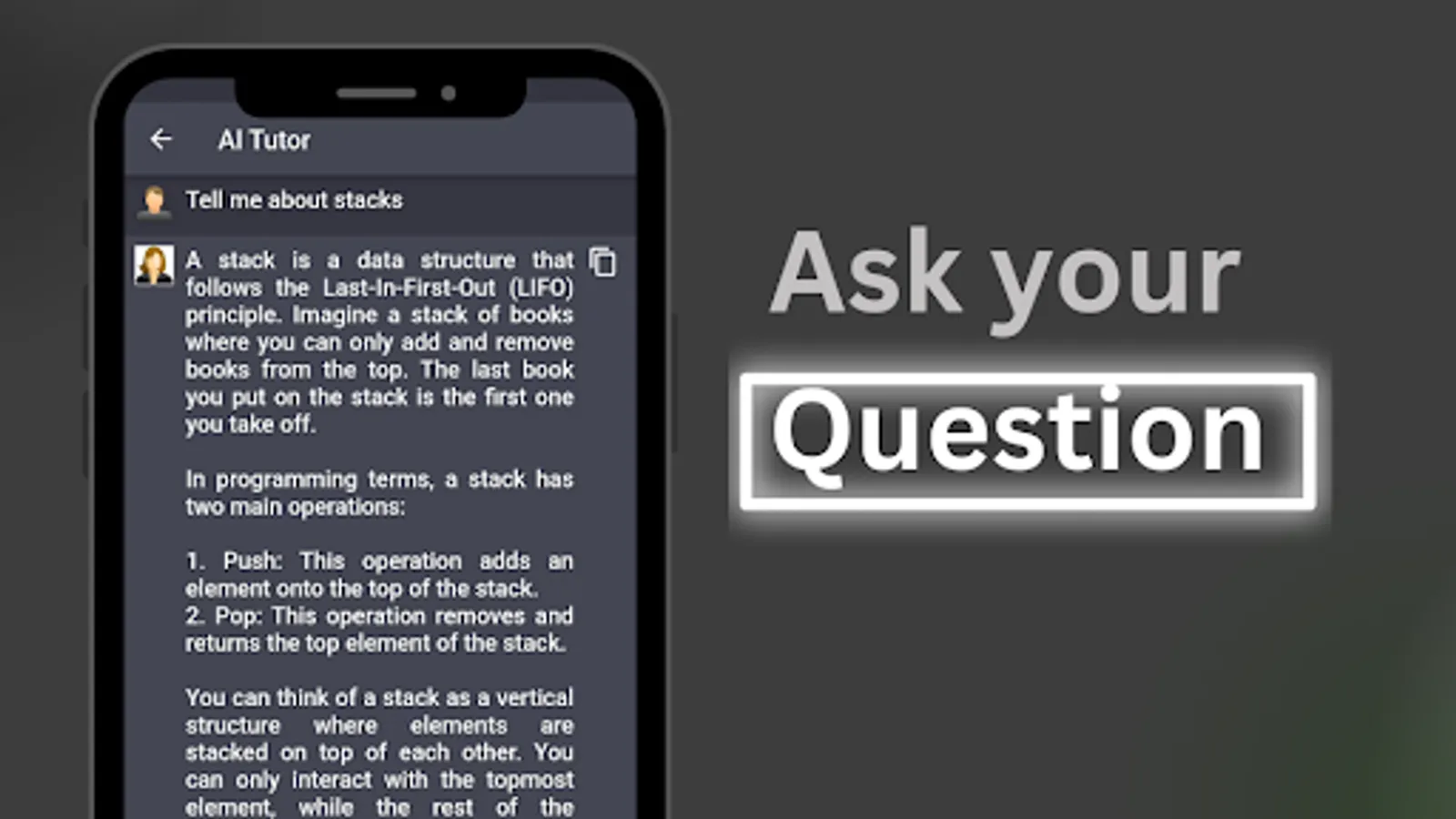 Say goodbye to hours of frustration and welcome a new era of learning efficiency. Our app harnesses the incredible potential of GPT models to deliver intelligent and insightful responses to your queries. With each interaction, our AI system learns and adapts, continuously improving its ability to provide precise and personalized assistance.