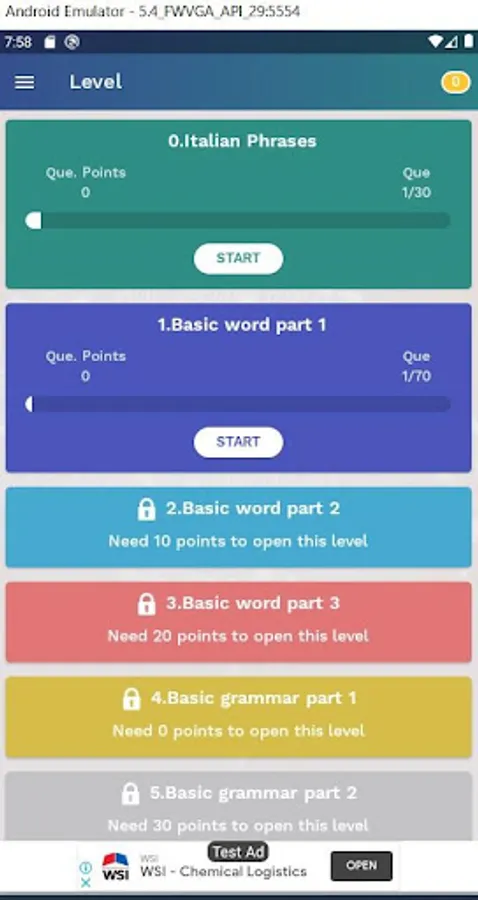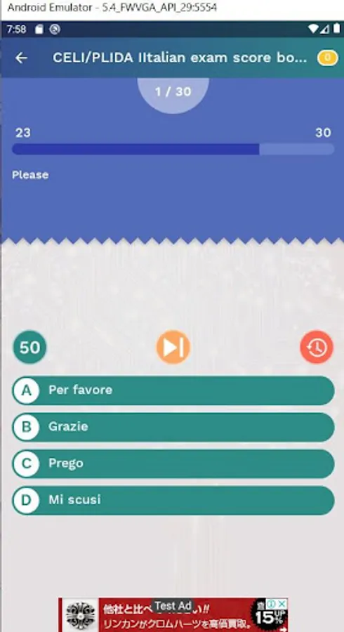 - Learning with 20 categories and simulation Test like standard CELI/PLIDA Italian exam Test.