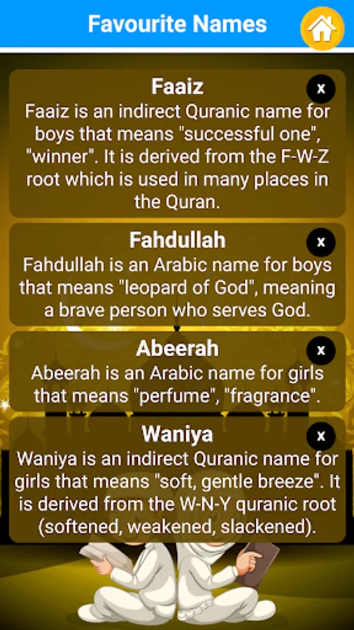 Here is thousands of best and unique Islamic names collection. Beautiful design and easy to use.