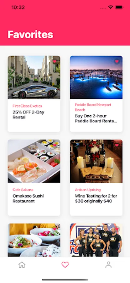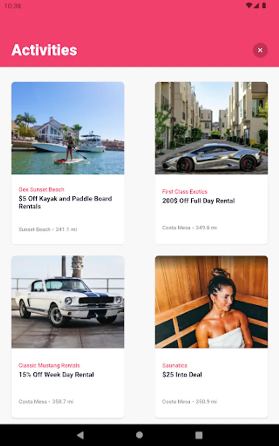 Users have access to deals and promotions within the following categories: food, drinks, activities, nightlife & events, and lessons & classes. Locals can find new places and activities to enjoy, and visitors can become a local overnight!