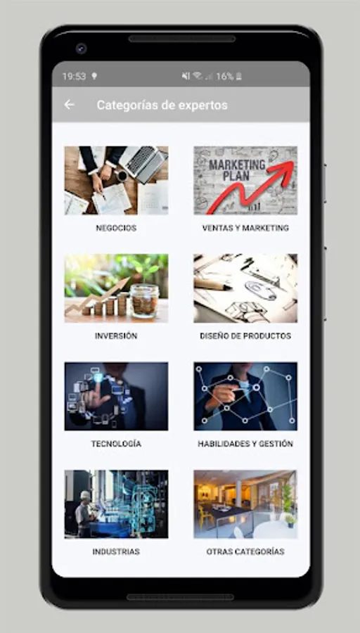 1- Search for an Expert . Our assistant helps you find the right expert for you, although you can also select on your own the one you consider. Mentors are classified by categories.