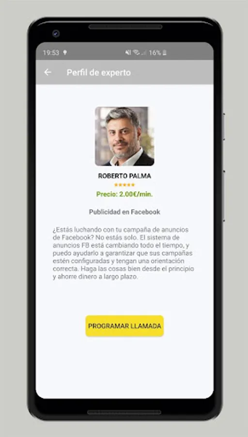 2- Call or videoconference . You will pay for the duration of the call, according to the expert's rate.