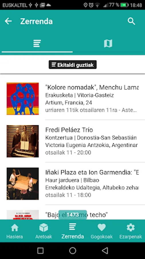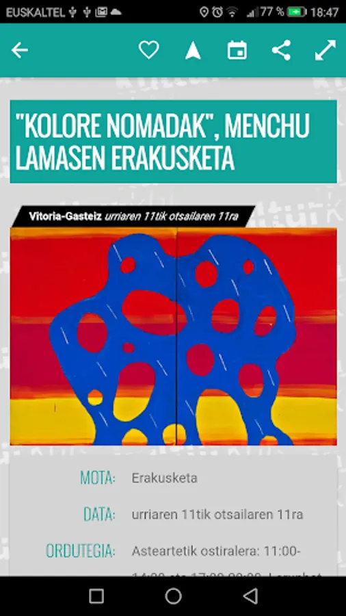 With this application you can find all the Cultural Agenda. It all face cultural activities and events of the Basque language area are included.