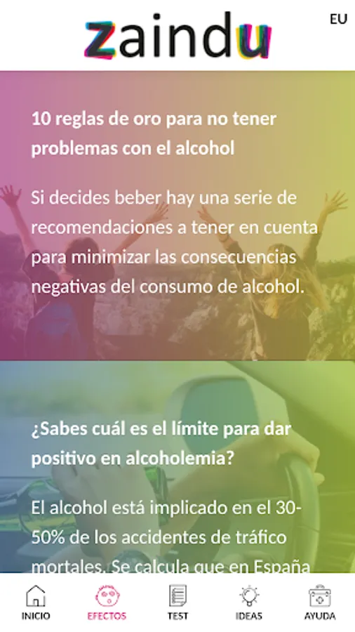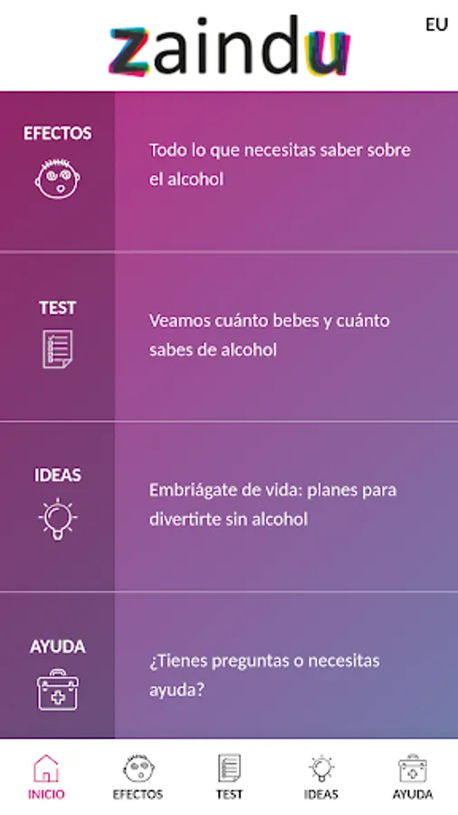 With this application of the Ministry of Health of the Basque Government you can access a lot of interesting information about alcohol: you can measure your consumption of alcohol, you will know the effects of alcohol on health, what to do if someone in your drinks too much, plans alternative, alcohol-related games, etc. The app is available in Basque and Castilian.
