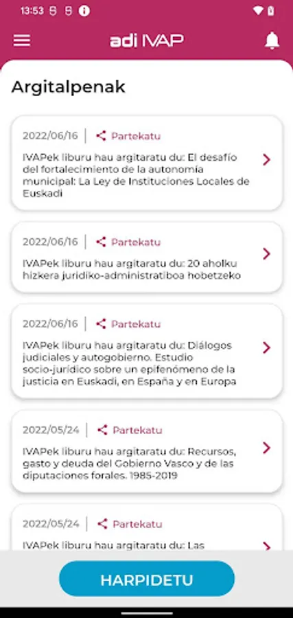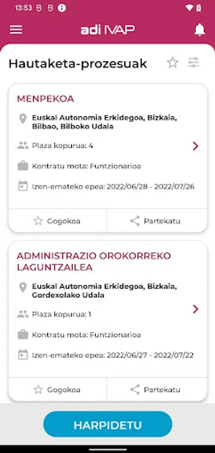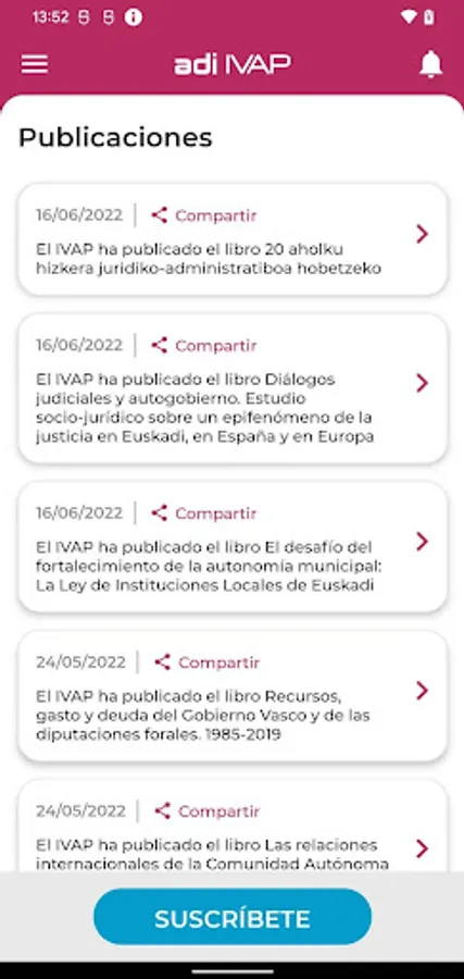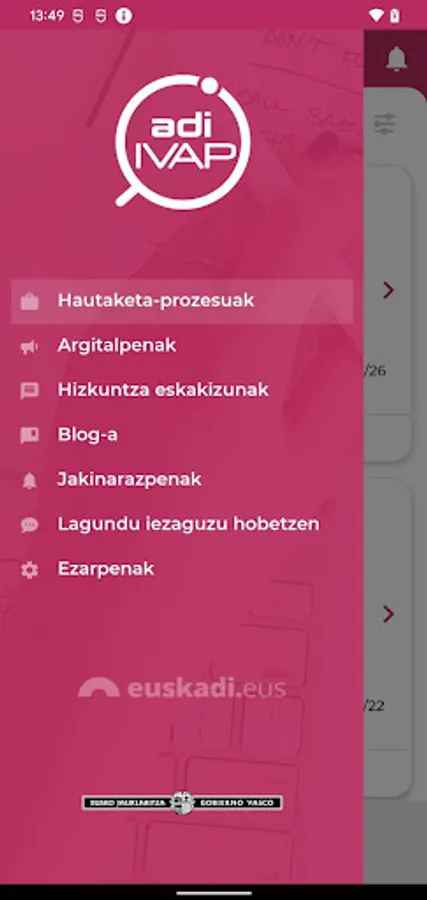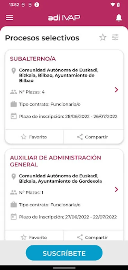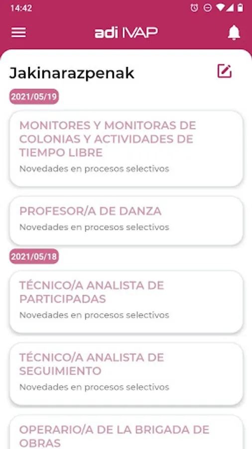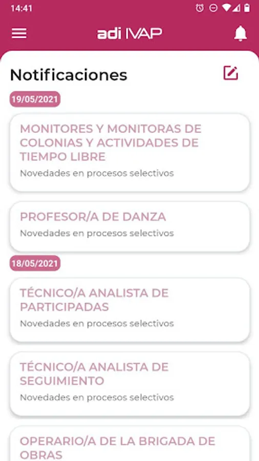 Visualization of the news in the selection processes and publications of the IVAP. Receive notifications allowing you to keep up to date with such news.