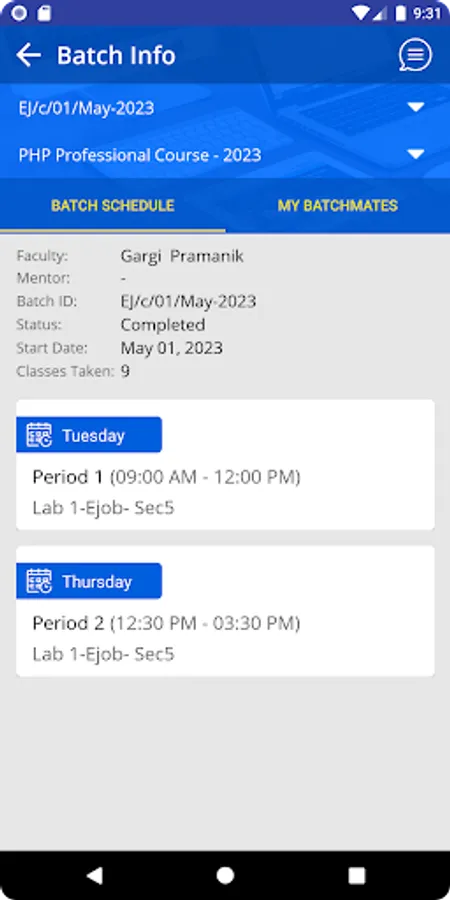 On the other hand, the faculties can view the details of their assigned batches, put attendance and grades for the students, chat with the students. The app also provides some useful notifications.