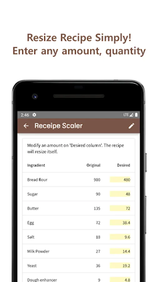 With Recipe Scaler, you no longer need to worry about inaccurate measurements or compromising the integrity of your favorite recipes. It provides you with a simple, user-friendly interface that allows you to input the original quantities of ingredients, and then effortlessly adjusts them based on your desired serving size.