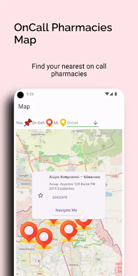You can find/navigate your nearest OnCall Pharmacies or all your nearest pharmacies