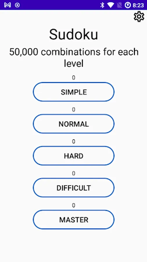 Five types of simple, common, difficult, expert, and master, each with 50,000 questions.