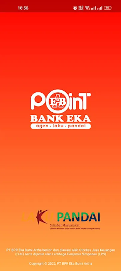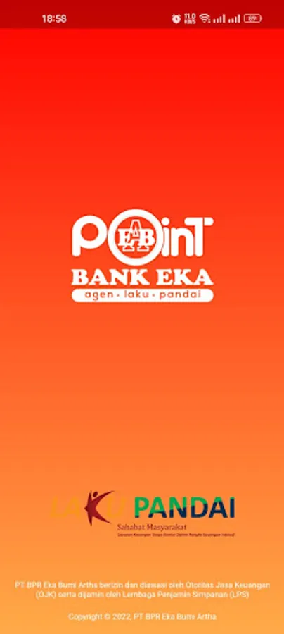 Bank Eka Point stands for Bank Eka Interaction and Transaction Post which is implemented in the form of a mobile application-based Laku Pandai Service (Officeless Financial Services for Inclusive Finance) used by Bank Eka Agents in providing banking services to the entire community. User account data, assets, and so on are included in the management of Bank Eka.