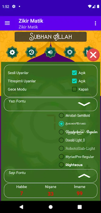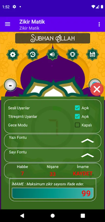✔ Thanks to the night mode of the Zikirmatik application, it saves battery in less lighted environments.