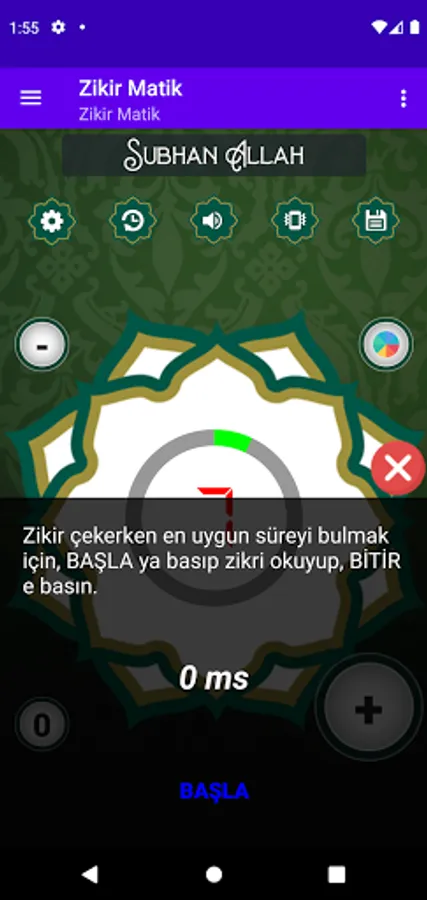 ✔ Thanks to the vibrating alerts, you can dhikr without looking at the screen. ( Vibration can be turned on or off optionally. )