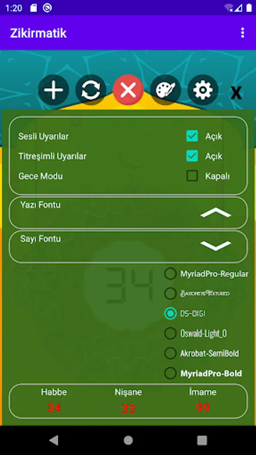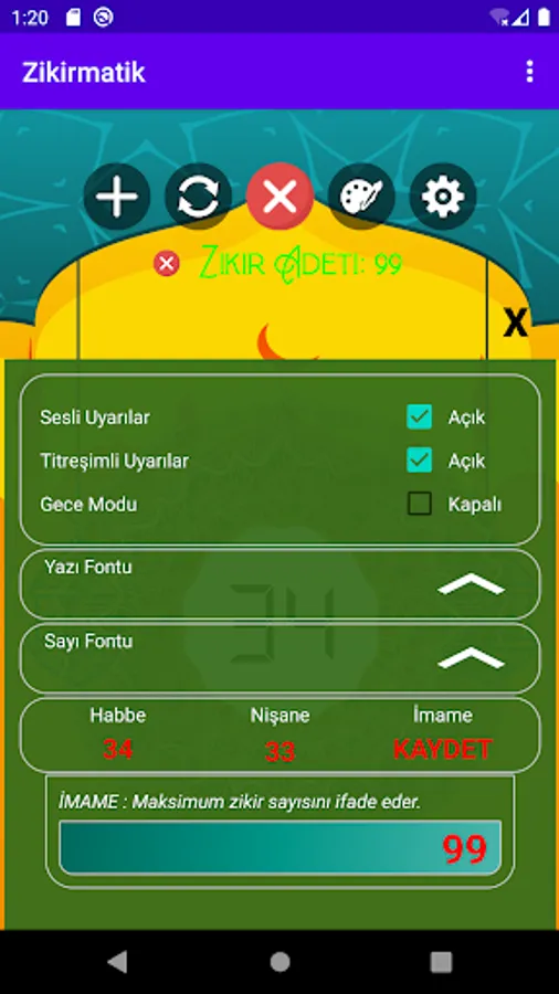 ✔ Thanks to the night mode of the Zikirmatik application, it saves battery in less lighted environments.
