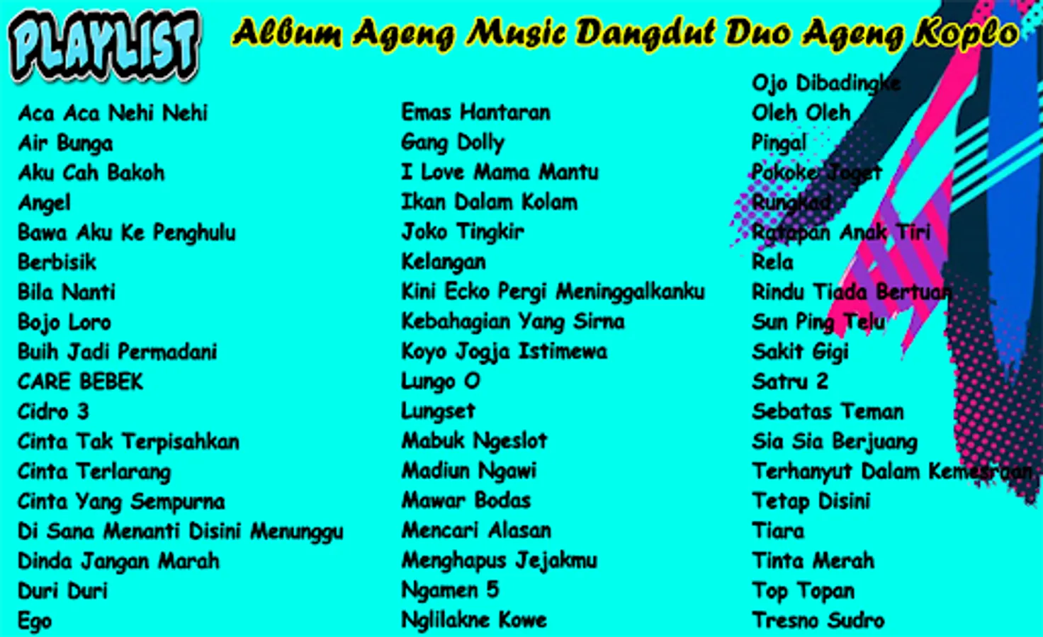 Ageng music collection album dangdut music duo ageng koplo as follows: