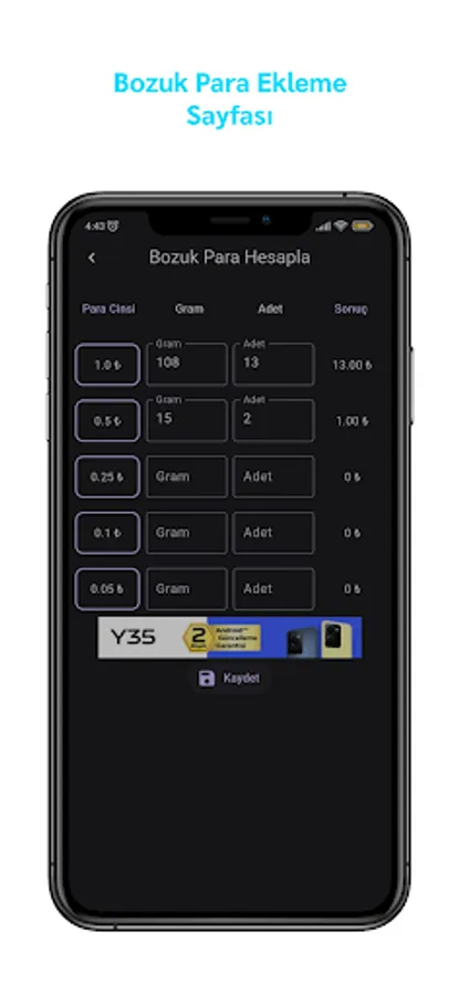 It allows you to weigh the coins and count your money by gram.